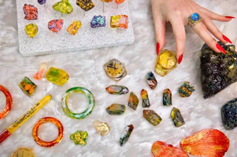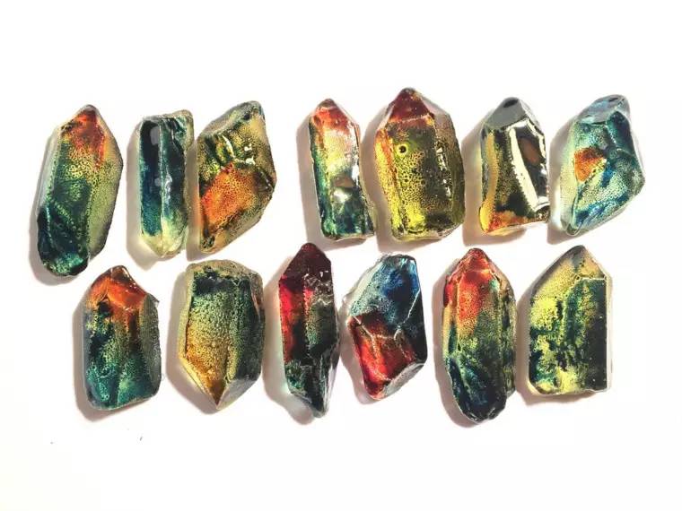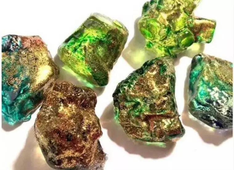 像是从硬糖山上采来的碎片,有鲜艳的色彩漩涡,尖凸的轮廓,经常还撒着金色的碎屑